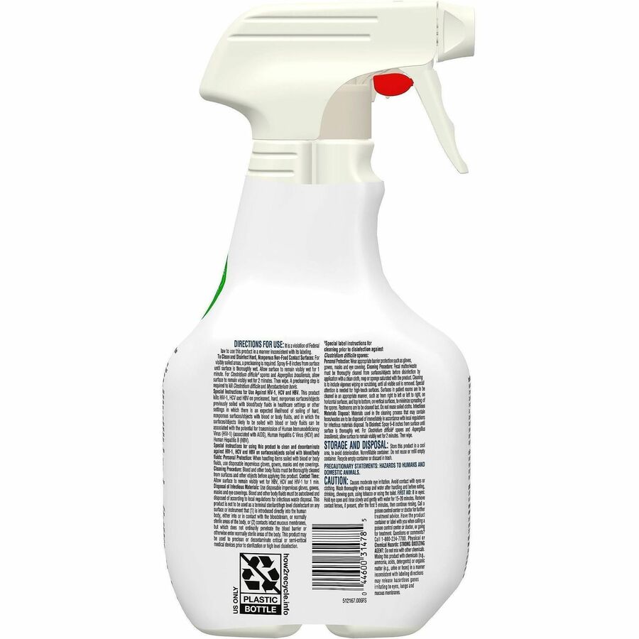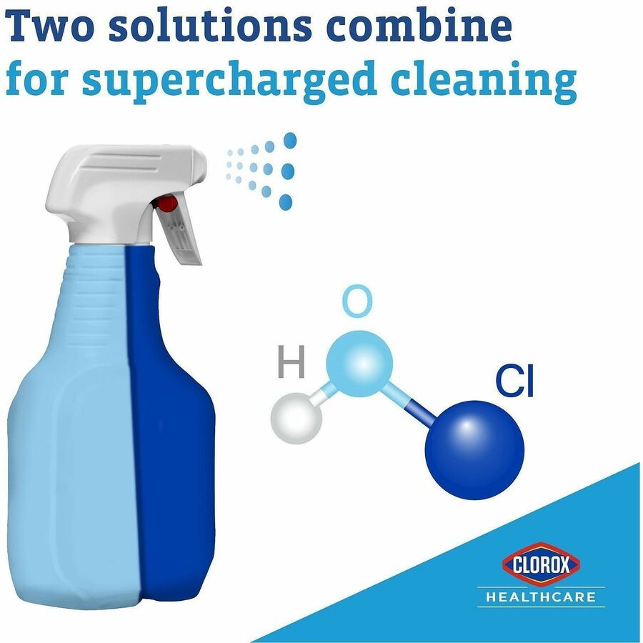 | Marketing Information | Bleach in more places than ever before using Clorox Healthcare Fuzion Cleaner Disinfectant. It combines the power of bleach with excellent aesthetics for broad use in your facility. Made with revolutionary, hypochlorous acid bleach technology that is fast-acting and easy on many surfaces, this pH neutral formula kills C. difficile spores in 2 minutes after precleaning, the fastest kill time available vs. leading brands, and eliminates more than 60 pathogens when used as directed. Disinfecting spray for healthcare settings has proven efficacy against outbreak-causing viruses, emerging viral pathogens, MRSA and VRE. Use in hospitals, operating rooms, outpatient surgery centers, emergency rooms and long-term care facilities. |